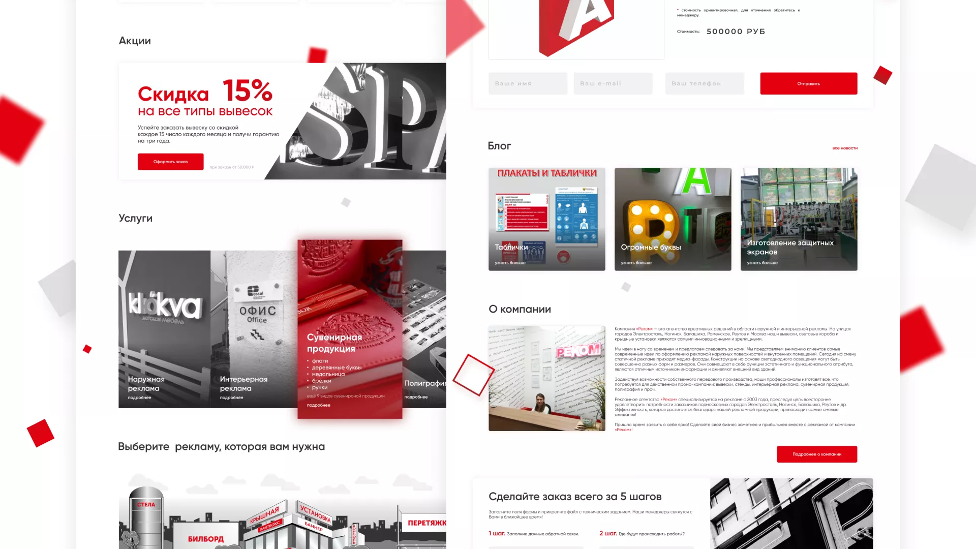 Стаж рекламно-производственной компании «РЕКОМ» — более 15 лет. Компания оказывает полный спектр услуг в Сызрани по интерьерной и наружной рекламе, а также по широкоформатной печати и полиграфии.