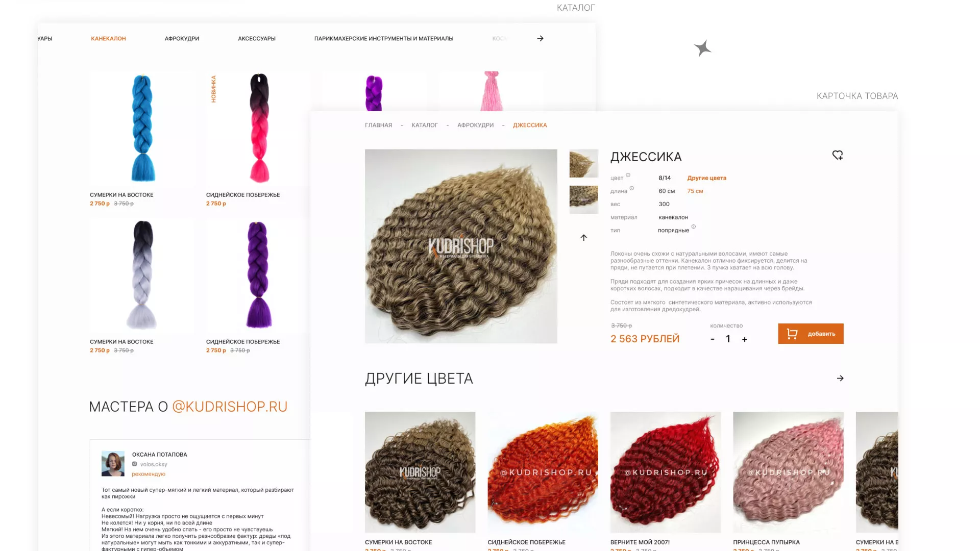 Создание интернет-магазина по продаже афрокудрей и других материалов для брендинга в Сызрани. Целевая аудитория — молодые и современные девушки, желающие разнообразить свой образ.